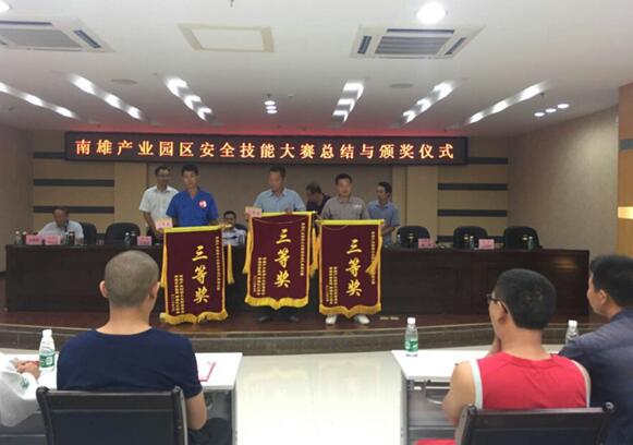 為進(jìn)一步增強(qiáng)南雄產(chǎn)業(yè)轉(zhuǎn)移工業(yè)園內(nèi)企業(yè)的安全生產(chǎn)意識(shí)和自我保護(hù)能力,促進(jìn)安全生產(chǎn)工作進(jìn)一步程序化、規(guī)范化和科學(xué)化,預(yù)防和杜絕重大安全生產(chǎn)事故的發(fā)生,南雄產(chǎn)業(yè)轉(zhuǎn)移工業(yè)園管委會(huì)、南雄市安監(jiān)局和南雄化工協(xié)會(huì)在南雄產(chǎn)業(yè)轉(zhuǎn)移園開(kāi)展了一次南雄產(chǎn)業(yè)園區(qū)安全技能大賽,大賽由安全生產(chǎn)知識(shí)競(jìng)賽(筆試)和安全生產(chǎn)技能比賽2個(gè)部分組成,園區(qū)所有企業(yè)都組隊(duì)參加了此次比賽,經(jīng)過(guò)2個(gè)部分的比賽,南雄基地獲得了三等獎(jiǎng)。
