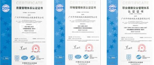 2017年2月8日,中科院廣州化學(xué)有限公司(廣州化學(xué))全資子公司廣州中科檢測(cè)技術(shù)服務(wù)有限公司(中科檢測(cè))獲得質(zhì)量管理體系ISO9001、環(huán)境管理體系ISO14001和職業(yè)健康安全管理體系OHSAS18001三體系認(rèn)證證書(shū)。
