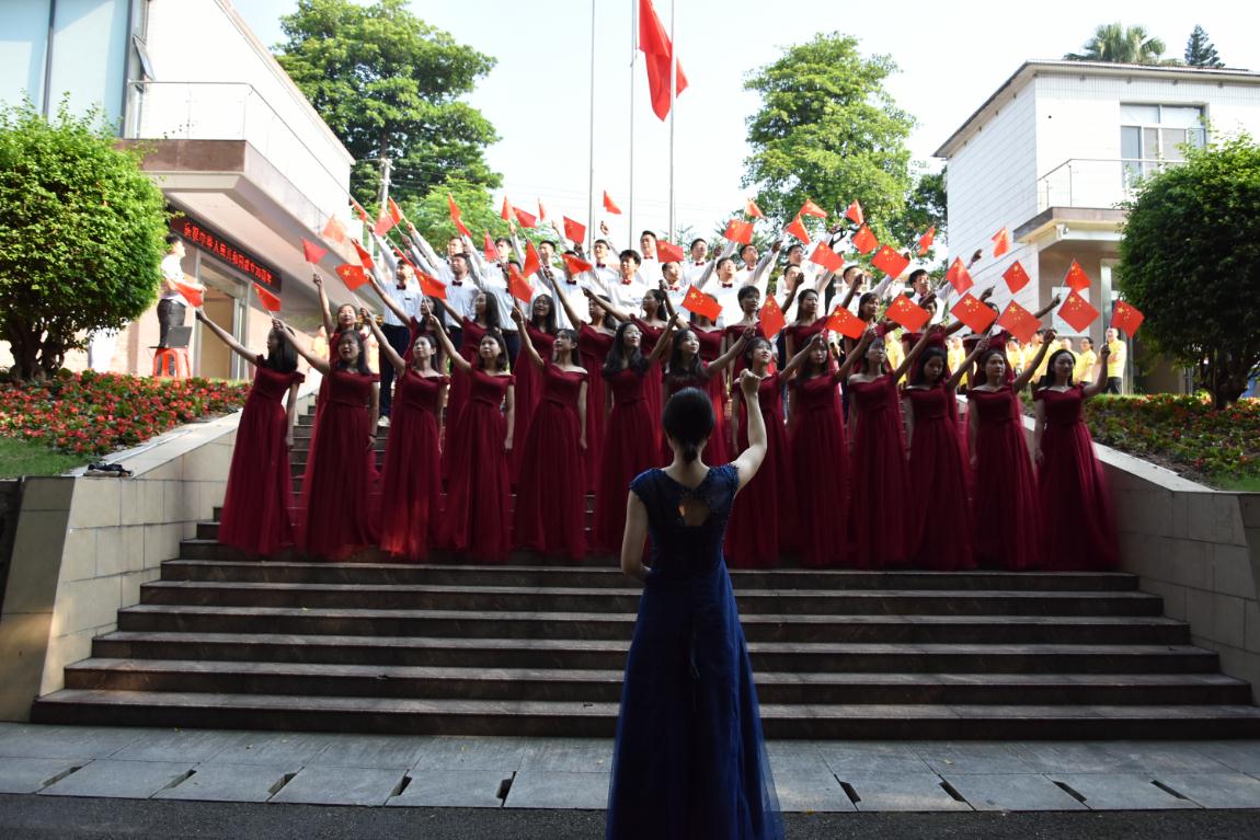 活動(dòng)當(dāng)天秋高氣爽,晴空萬里,由20名護(hù)旗手組成的儀仗隊(duì),排列成整齊的方隊(duì),邁著鏗鏘的步伐,護(hù)衛(wèi)著國(guó)旗進(jìn)入場(chǎng)地,隨著《義勇軍進(jìn)行曲》的奏起,鮮艷的五星紅旗冉冉升起,在場(chǎng)人員行注目禮齊唱國(guó)歌,嘹亮的國(guó)歌聲響徹天際。隨后,由廣州化學(xué)工會(huì)、化灌公司工會(huì)、中科檢測(cè)工會(huì)組成的合唱隊(duì)齊唱《國(guó)家》、《走進(jìn)新時(shí)代》,家是最小國(guó),國(guó)是千萬家,國(guó)家的興盛是我們每個(gè)中國(guó)人的使命和榮光,中國(guó)特色社會(huì)主義進(jìn)入了新時(shí)代,廣州化學(xué)也結(jié)合自身實(shí)際提出了“新時(shí)代、新征程、新藍(lán)海、新領(lǐng)域、新臺(tái)階”的發(fā)展方針,振奮人心的歌聲,唱出了廣州化學(xué)兒女對(duì)黨、對(duì)祖國(guó)的熱愛,也唱出作為廣州化學(xué)一份子的自豪與自信。最后,全體在場(chǎng)人員組成方陣擺出“70”高呼“祖國(guó)萬歲”一起慶祝新中國(guó)成立70周年。