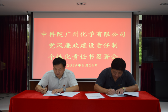廣州化學董事會、經(jīng)營班子在2018年年底完成了換屆工作,廣州化學在2019年年初對中層領導干部進行重新聘任工作,按照廣州化學《中科院廣州化學有限公司黨風廉政建設責任制實施細則》(實施細則)的要求,責任人職務發(fā)生變動后,由接任者以書面的形式重新簽訂責任書。廣州化學領導班子成員之間、分管領導與分管部門主要負責人之間、黨委副書記與各支部書記之間、部門負責人與重點崗位人員等根據(jù)新的職務職責按照實施細則的要求重新簽訂了責任書。