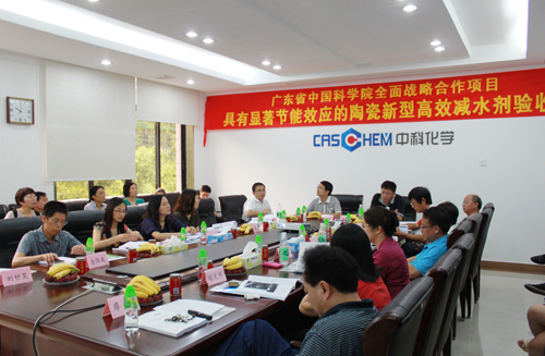 2012年7月24日,廣東省科學技術廳在中科院廣州化學有限公司(廣州化學)組織召開了由中科院廣州化學有限公司、廣東東鵬陶瓷股份有限公司和佛山市陶瓷研究所有限公司共同承擔的廣東省、中國科學院全面戰略合作項目“具有顯著節能效應的陶瓷新型高效減水劑”(立項編號:2009A091100008)的驗收會。