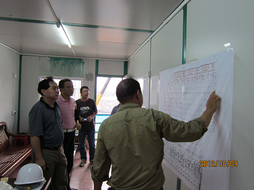 隨后,廖兵一行到中海佛山千燈湖(三期)旋挖樁工地現場檢查建設工作。他們首先對建設工地現場的施工工藝、施工安全和施工管理進行了詳細深入的檢查。之后,聽取了駐地工程項目經理的工作匯報。廖兵指出,現場工作一定要堅持“以人為本、安全第一”,嚴把質量安全關,做好工程現場、技術檔案和施工資料等管理工作。他要求大家把此項目作為化灌公司項目管理的典型來抓,在展現化灌公司先進工程施工技術和工藝的同時,要體現出化灌公司的項目管理水平。最后,廖兵一行對工程現場施工的員工進行了慰問,提醒他們要注意施工安全和防暑降溫,對他們在盛夏酷暑氣候下的辛勤工作表示感謝。
