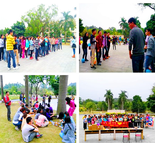 這場別開生面的聯(lián)誼活動,一經(jīng)通知便得到不少同學(xué)的響應(yīng)。同學(xué)們的熱情很高,參與本次活動的同學(xué)多達(dá)100人。下午兩點(diǎn),活動正式開始。首先是進(jìn)行游戲互動,模仿日前很火的綜藝節(jié)目《奔跑吧兄弟》,設(shè)置了多環(huán)節(jié)的游戲,不僅可以增加趣味,同時也能鍛煉身體。游戲主題是定向越野之“running man”。游戲環(huán)節(jié)包括:定向越野之“公主保護(hù)進(jìn)行時”踩氣球熱身賽、“記憶達(dá)人”、“眼疾手快”、“愛的抱抱”以及 “尋寶之旅”。將參加的同學(xué)分成8個小隊(duì)進(jìn)行比賽,根據(jù)每場比賽結(jié)果,分別提供不同的線索給各個隊(duì),再根據(jù)線索去尋找下場比賽的場地,規(guī)定最先完成全部任務(wù)的前三個小隊(duì)獲勝,獲勝隊(duì)得到由學(xué)生會提供的電影票、洗衣液等豐富大獎。下午四點(diǎn),游戲結(jié)束,大家盡管累得滿頭大汗,但意猶未盡。于是各個小隊(duì)又圍坐在一起,聊得熱火朝天。最后,我們進(jìn)行了合影留念。下午五點(diǎn),活動正式結(jié)束。