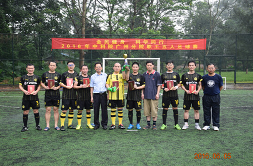 6月4日~5日,中國科學院廣州分院(廣州分院)2016年職工五人制足球賽在中科院廣州化學有限公司(廣州化學)五人制足球場進行。此次比賽由廣州化學承辦。此次足球賽共有中國科學院南海海洋研究所(南海海洋研究所)、中國科學院廣州能源研究所(廣州能源研究所)、中國科學院華南植物園(華南植物園)、中科院廣州電子技術有限公司(廣州電子)、中國科學院廣州生物醫藥與健康研究院、中科院廣州化灌工程有限公司、中國科學院廣州地球化學研究所、廣州化學8個單位組隊參加比賽。