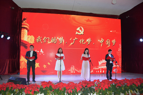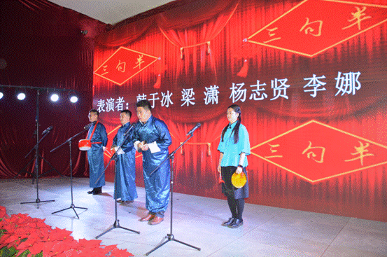 文藝匯演開始前,廣州化學(xué)全體領(lǐng)導(dǎo)班子成員走上舞臺(tái)向全體員工獻(xiàn)上了新春的祝福。文藝匯演在嘹亮的《 歌唱祖國 》中拉開了序幕,詩朗誦《我們的夢、廣化夢、中國夢》展現(xiàn)了廣化人頑強(qiáng)拼搏,為夢想不斷努力奮斗的精神;手語舞蹈《愛》勾起了大家滿滿的回憶;語言節(jié)目《三句半》引起了滿堂的歡聲笑語;獨(dú)舞《羞答答的玫瑰靜悄悄的開》,以優(yōu)雅的舞姿為文藝匯演注入一股清新的暖流;吉他彈唱《成都》+《夜空中最亮的星》歌曲或深情款款、或歡快明朗,帶動(dòng)了匯演的氣氛;《三人小人舞》不時(shí)地引得現(xiàn)場觀眾爆發(fā)出陣陣的笑聲和掌聲。節(jié)目過程中還穿插了抽獎(jiǎng)環(huán)節(jié)與臺(tái)下觀眾進(jìn)行了互動(dòng)。