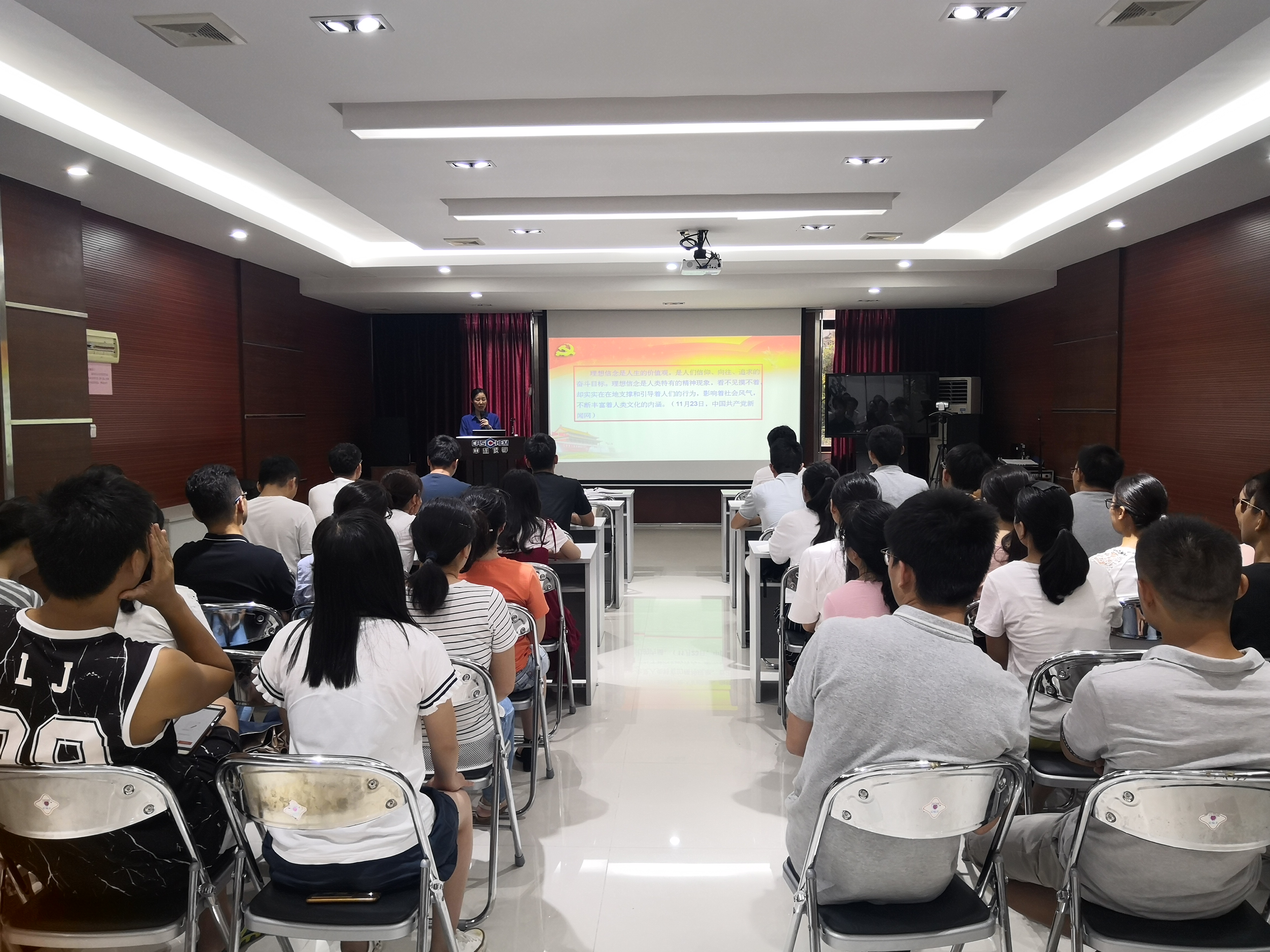 為引導(dǎo)研究生樹立共產(chǎn)主義遠(yuǎn)大理想和中國特色社會主義共同理想,未來能夠肩負(fù)起民族復(fù)興的時代重任,7月4日,廣州化學(xué)面向在讀研究生召開“堅(jiān)定理想信念,勇做時代弄潮兒”主題報告會。在讀研究生四十余人參加會議,黨委副書記、紀(jì)委書記申智慧做“堅(jiān)定理想信念,勇做時代弄潮兒”主題報告。