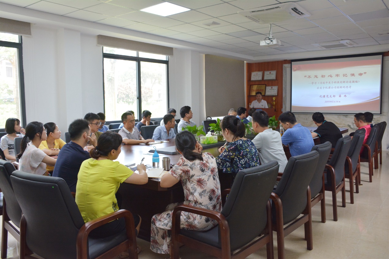 會上,在認(rèn)真聽取了薛煒以“學(xué)習(xí)《習(xí)近平關(guān)于科技創(chuàng)新論述摘編》后關(guān)于化灌公司創(chuàng)新的思考”為主題的黨課后,胡美龍與全體參會人員一起回顧了化灌公司的發(fā)展歷程。他指出化灌公司成長壯大的過程充分說明技術(shù)創(chuàng)新、機(jī)制創(chuàng)新、管理模式創(chuàng)新在企業(yè)發(fā)展中的重要地位和作用。此次調(diào)研也是踐行“守初心,擔(dān)使命、找差距、抓落實(shí)”要求的一項(xiàng)重要舉措。
