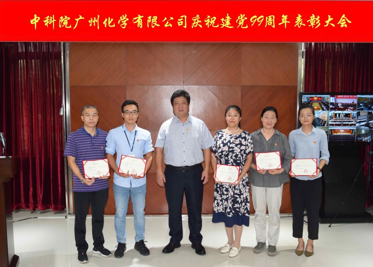 71日,為慶祝中國共產黨成立99周年,進一步深化中科院廣州化學有限公司(廣州化學)“不忘初心、牢記使命”主題教育成果,發揮各黨支部的戰斗堡壘作用和黨員的先鋒模范帶頭作用,弘揚樹立典型、弘揚正氣的企業文化,廣州化學召開了慶祝建黨99周年表彰大會,廣州化學黨委書記胡美龍為獲獎人員和支部頒獎并合影留念。