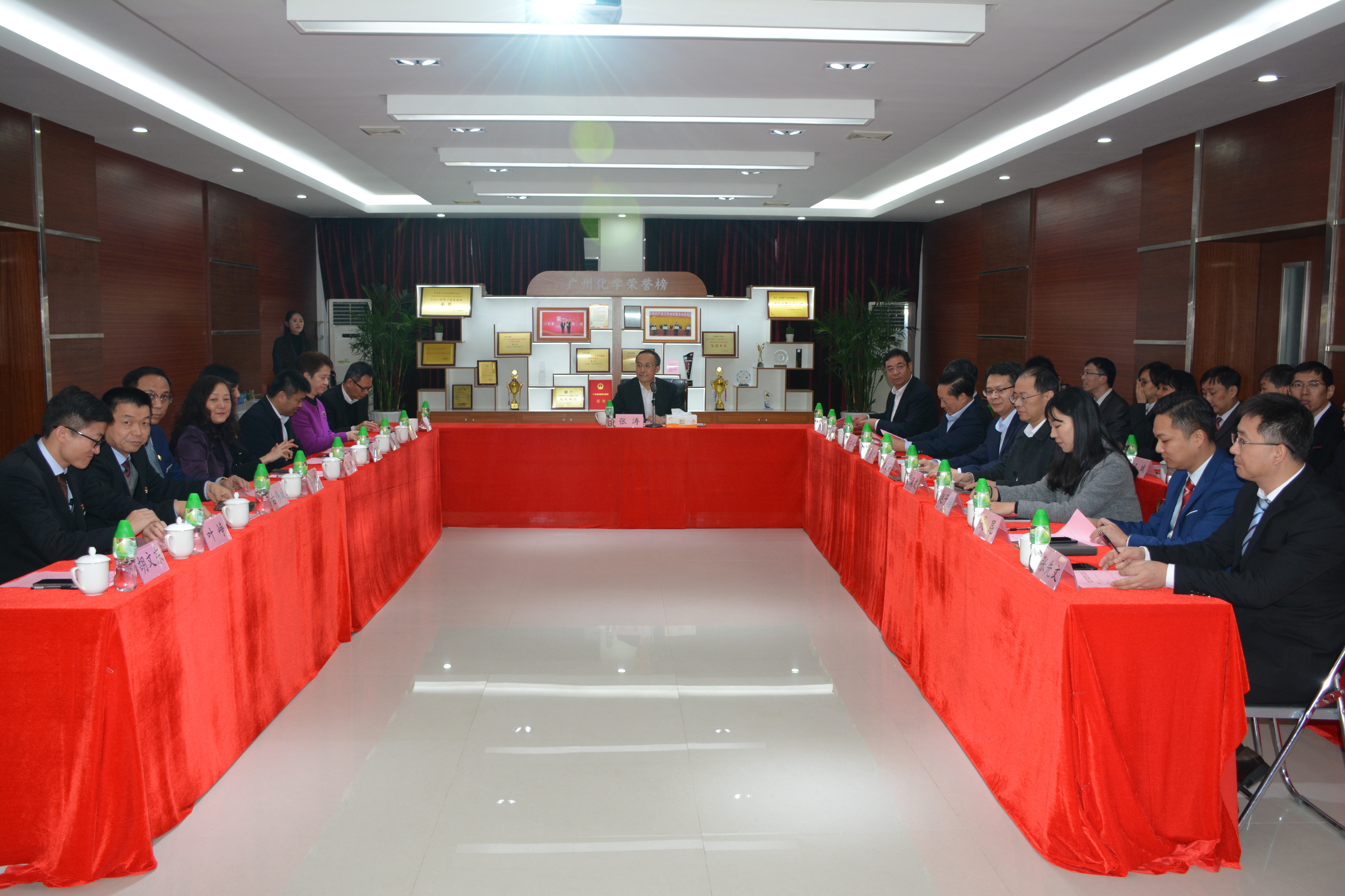 隨后,張濤一行與廣州化學中層以上人員進行了座談交流。廣州化學黨委書記、董事長胡美龍作了題為《傳承創新 發展——廣州化學轉制19年的發展歷程》的工作匯報,他首先感謝中國科學院黨組、中國科學院經管委、國科控股黨委、廣州分院等上級領導對廣州化學長期以來的支持和幫助,他介紹了廣州化學的歷史沿革及發展歷程,匯報了廣州化學近年的戰略舉措和取得的經營成果。