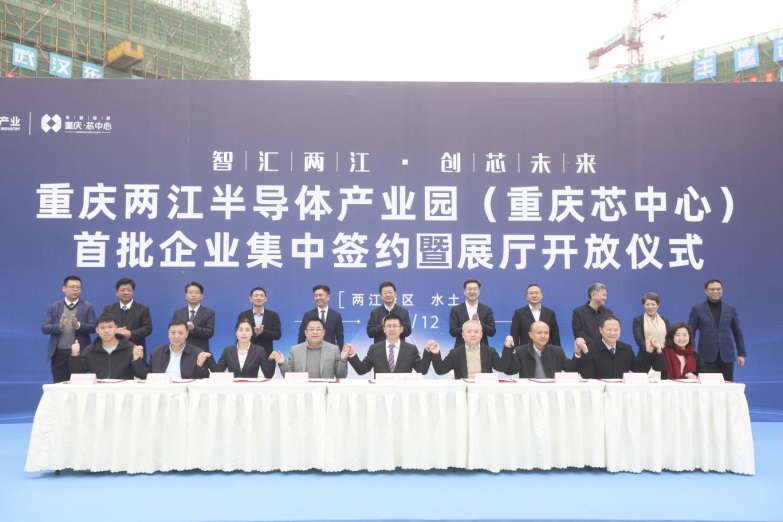 12月22日,重慶兩江半導(dǎo)體產(chǎn)業(yè)園(重慶芯中心)首批企業(yè)集中簽約暨展廳開(kāi)放儀式成功舉行。重慶市委常委、兩江新區(qū)黨工委書(shū)記、管委會(huì)主任段成剛,兩江新區(qū)黨工委副書(shū)記、管理委員會(huì)常務(wù)副主任王志杰等領(lǐng)導(dǎo)出席儀式。中科院廣州化學(xué)有限公司(廣州化學(xué))黨委書(shū)記、董事長(zhǎng),中科檢測(cè)技術(shù)服務(wù)(廣州)股份有限公司(中科檢測(cè))董事長(zhǎng),廣州化學(xué)西部研究院院長(zhǎng)胡美龍出席簽約儀式并致辭。